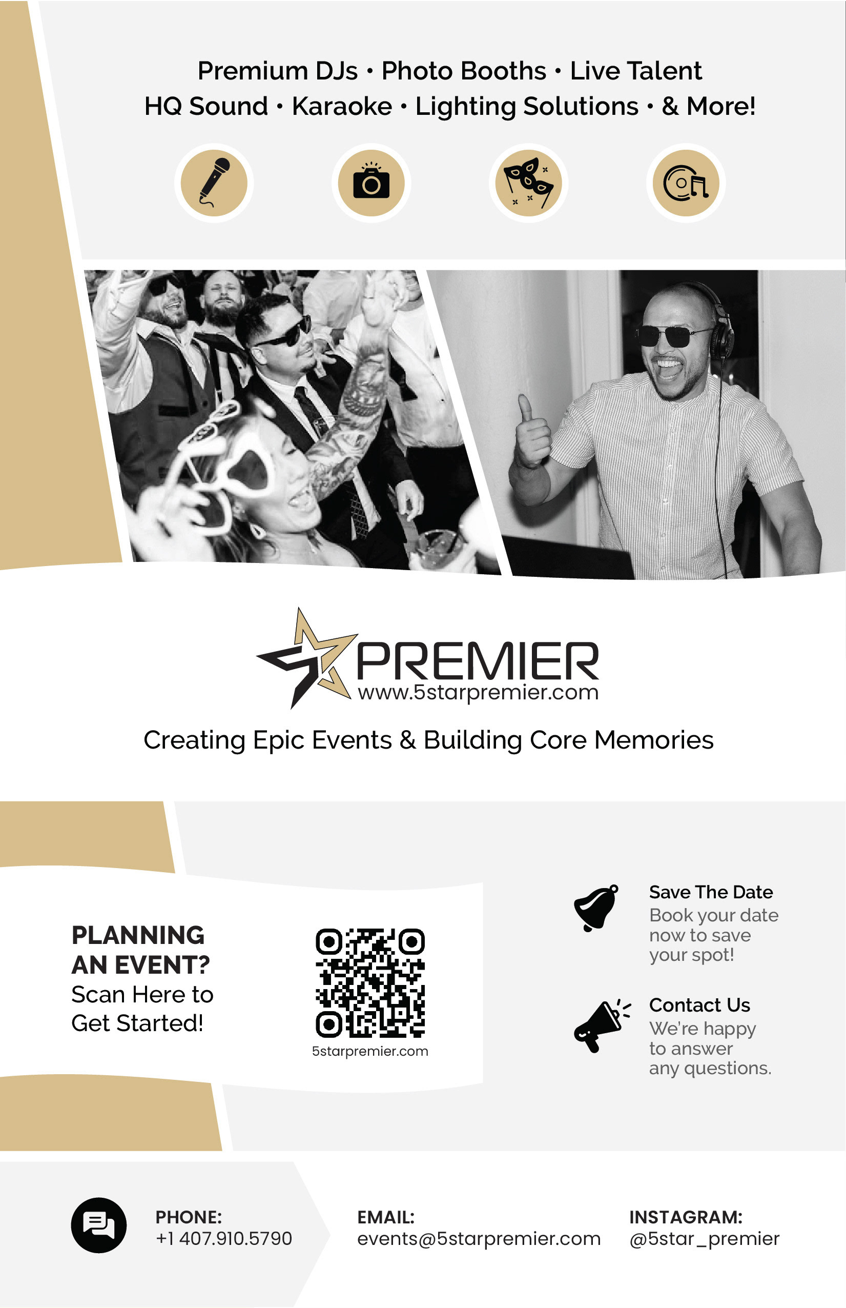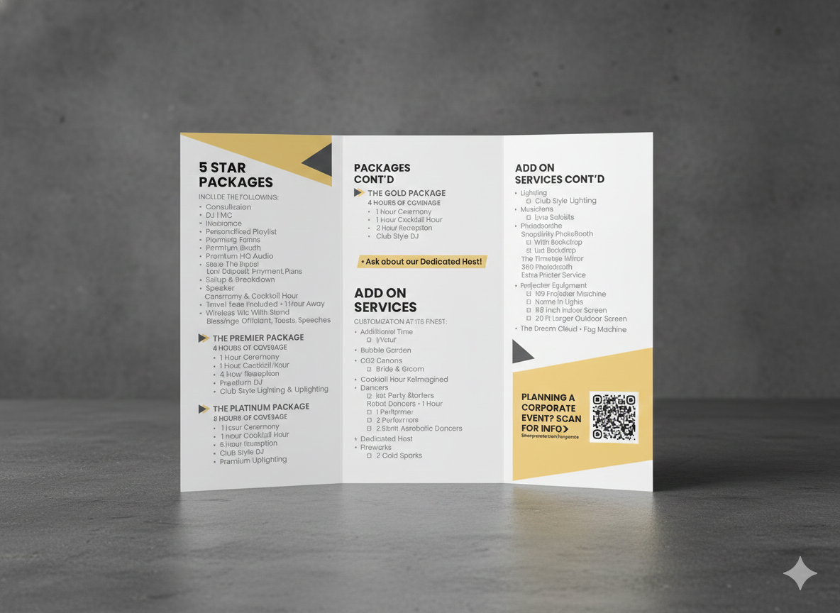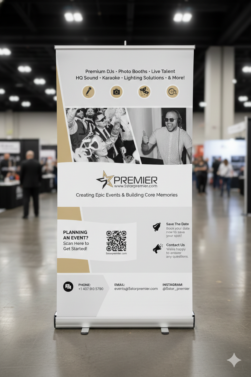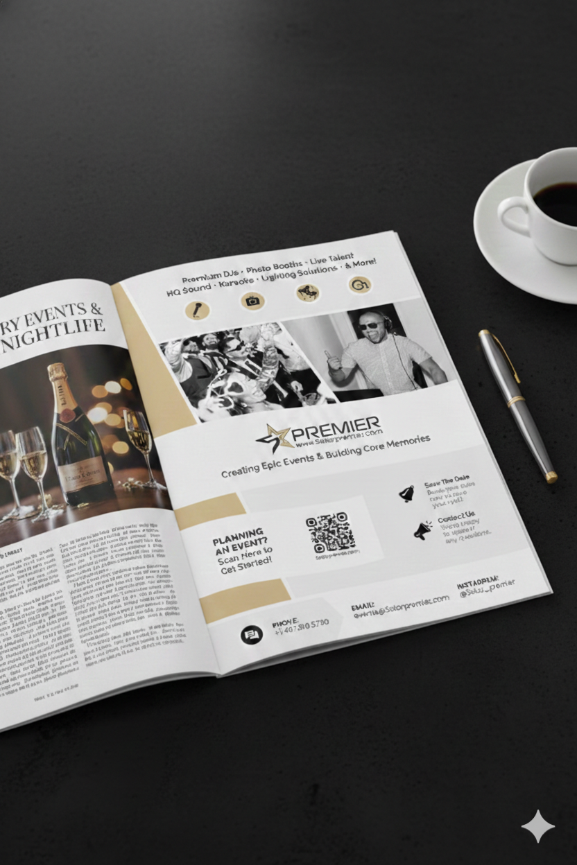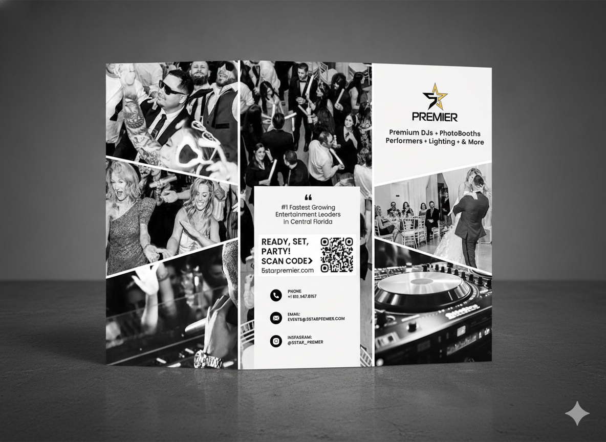 Brand identity designed for 5 Star Premier, including a custom logo, business cards, brochure, and magazine ad. Every touchpoint was crafted to feel polished, cohesive, and high-impact.