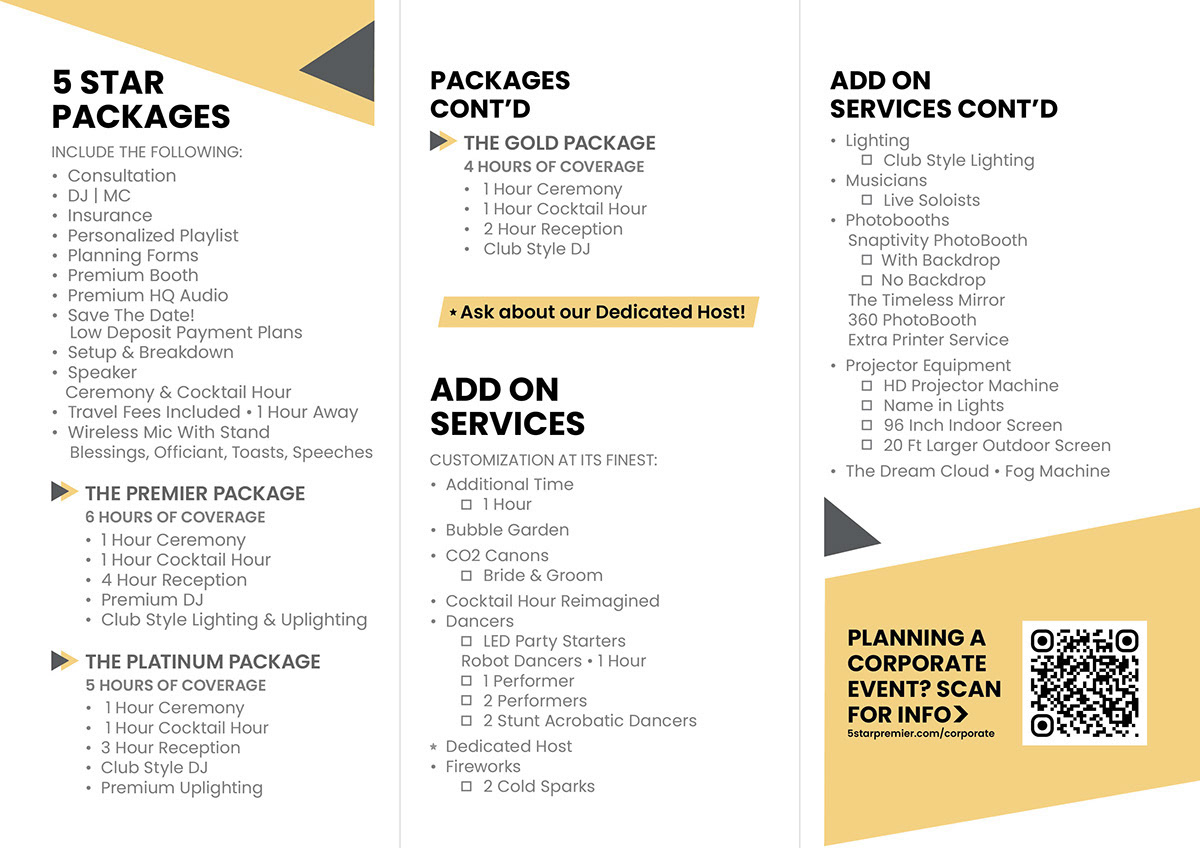 I designed a sleek, informative brochure for 5 Star Premier that captured their upscale brand identity and left a lasting impression on clients.