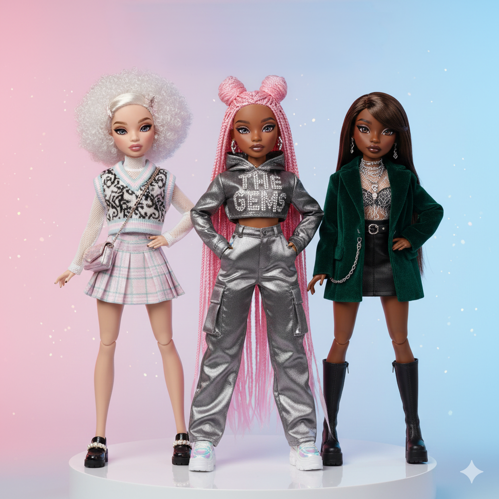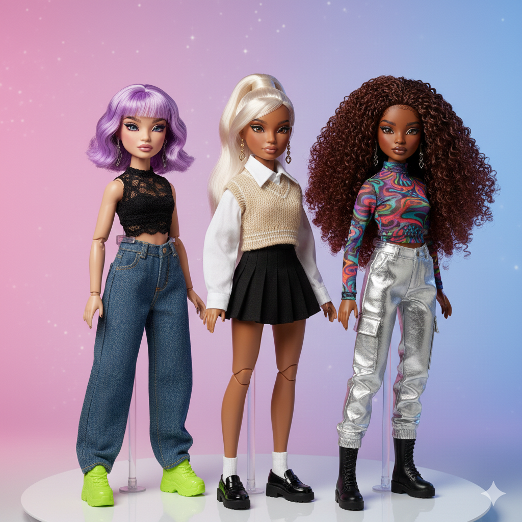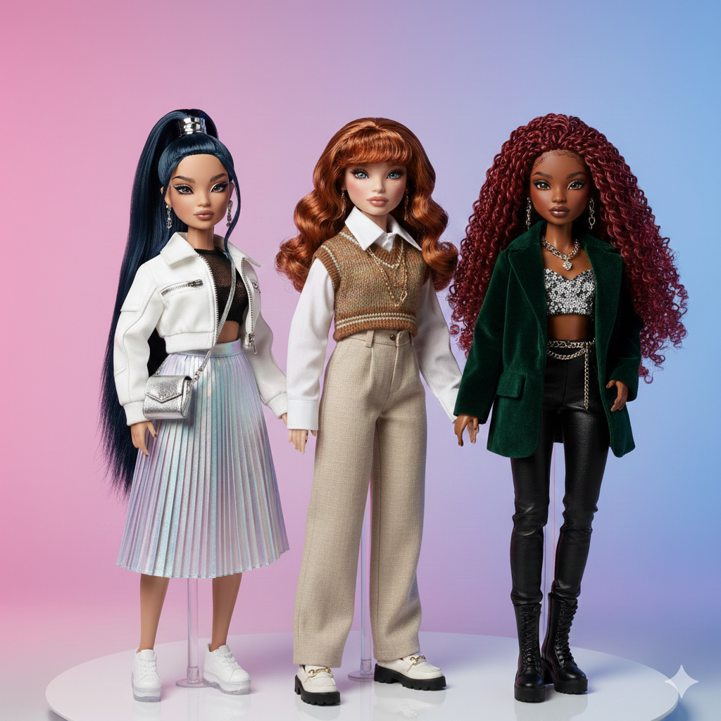 For NewGen Dolls Co., I designed two collectible clothing lines for young adult audiences: a Futurist Streetwear Collection, featuring bold silhouettes, metallic accents, and cutting-edge patterns, and an Everyday Wear Fashions line, offering stylish, wearable pieces with editorial polish. Both collections position the dolls as fashion-forward, collectible icons that merge play, style, and lifestyle storytelling.
