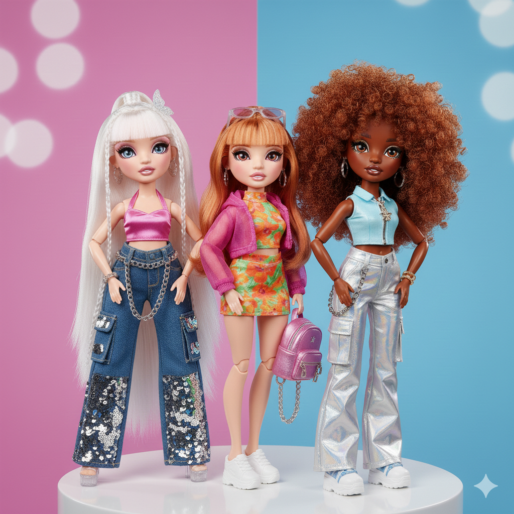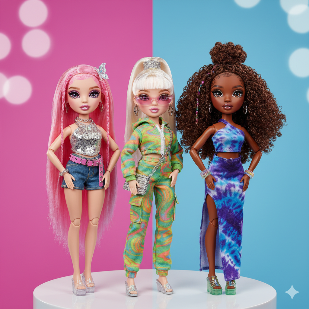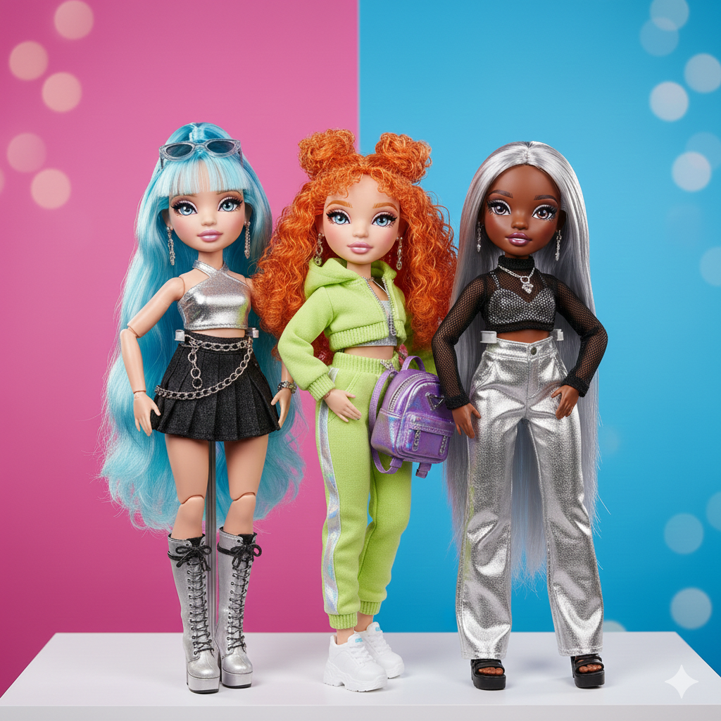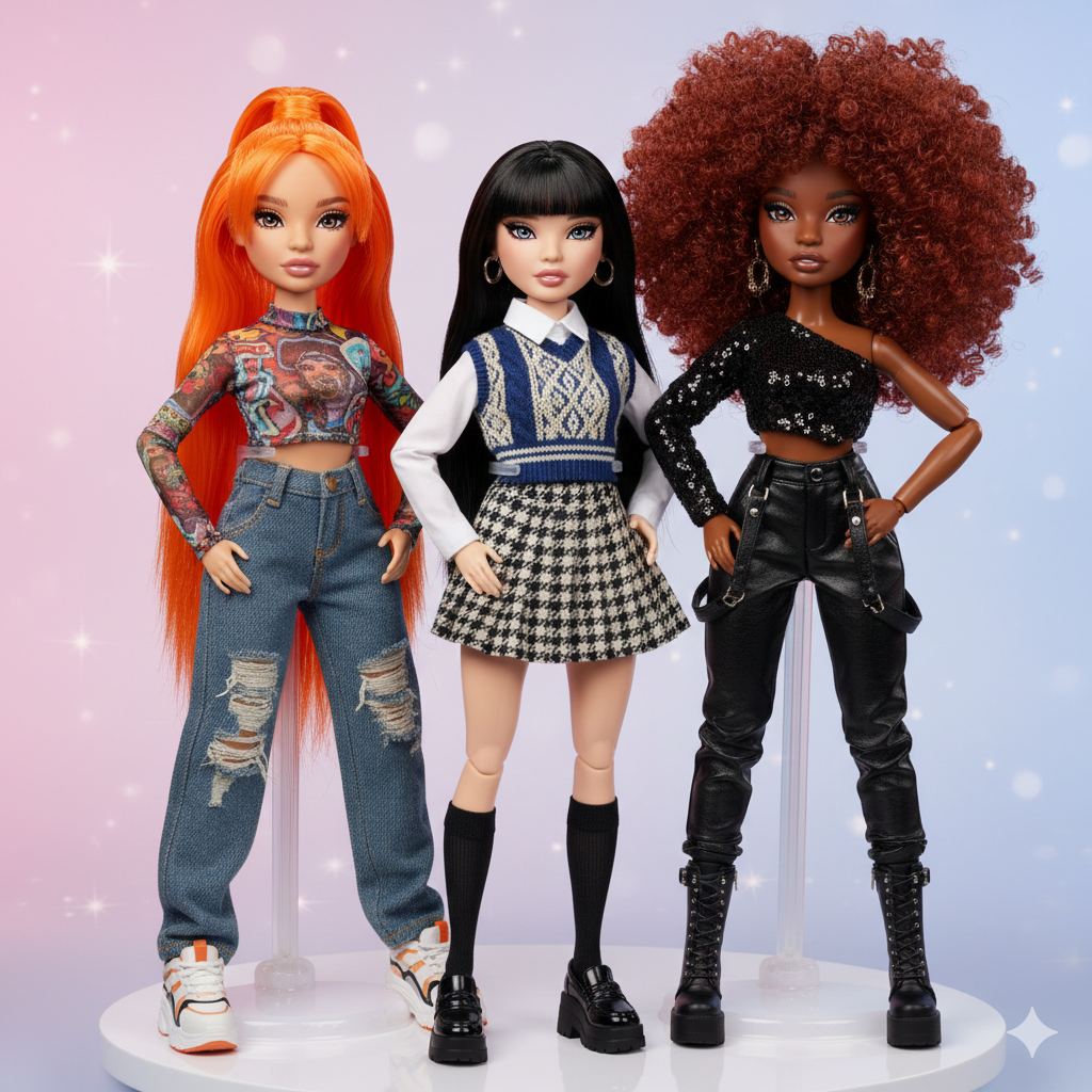 For NewGen Dolls Co., I designed two collectible clothing lines for young adult audiences: a Futurist Streetwear Collection, featuring bold silhouettes, metallic accents, and cutting-edge patterns, and an Everyday Wear Fashions line, offering stylish, wearable pieces with editorial polish. Both collections position the dolls as fashion-forward, collectible icons that merge play, style, and lifestyle storytelling.